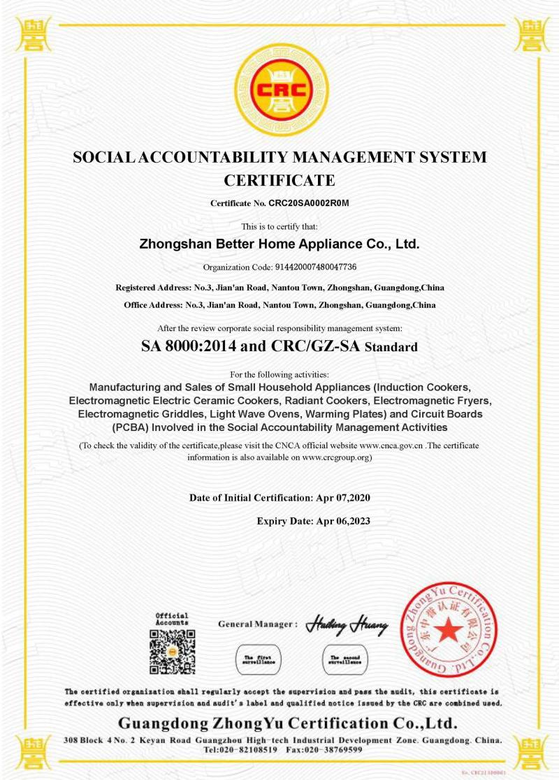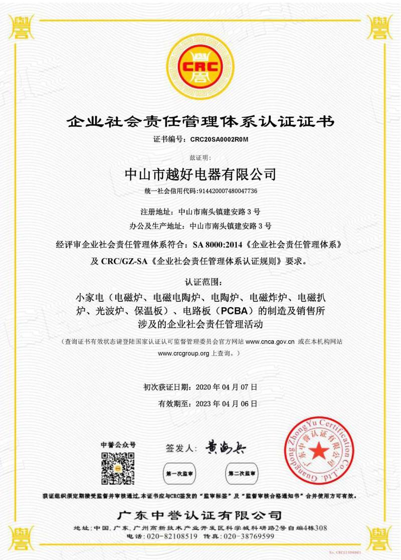 我司获得SA8000社会责任管理体系认证